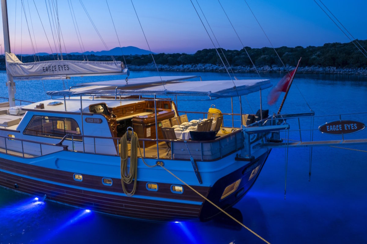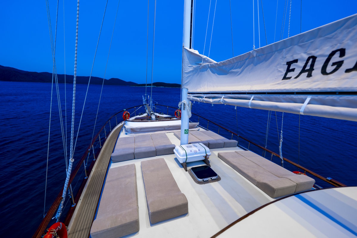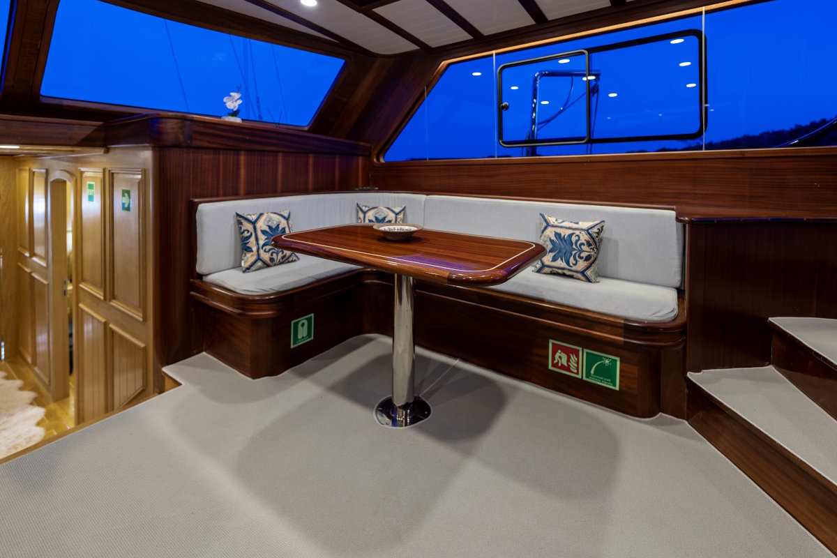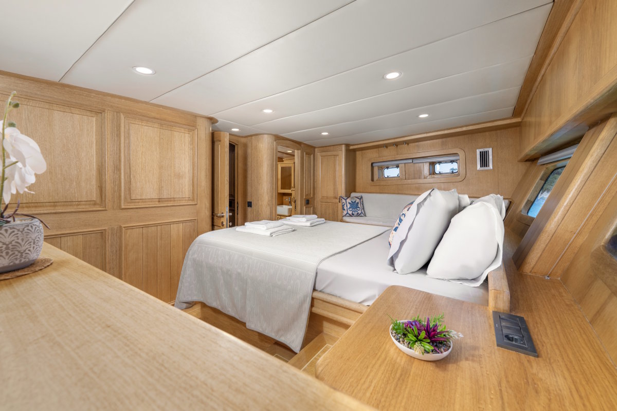 - 4 cabines (2 cabines master avec lits doubles, 1 cabine avec lit double et 1 cabine avec deux lits separes).