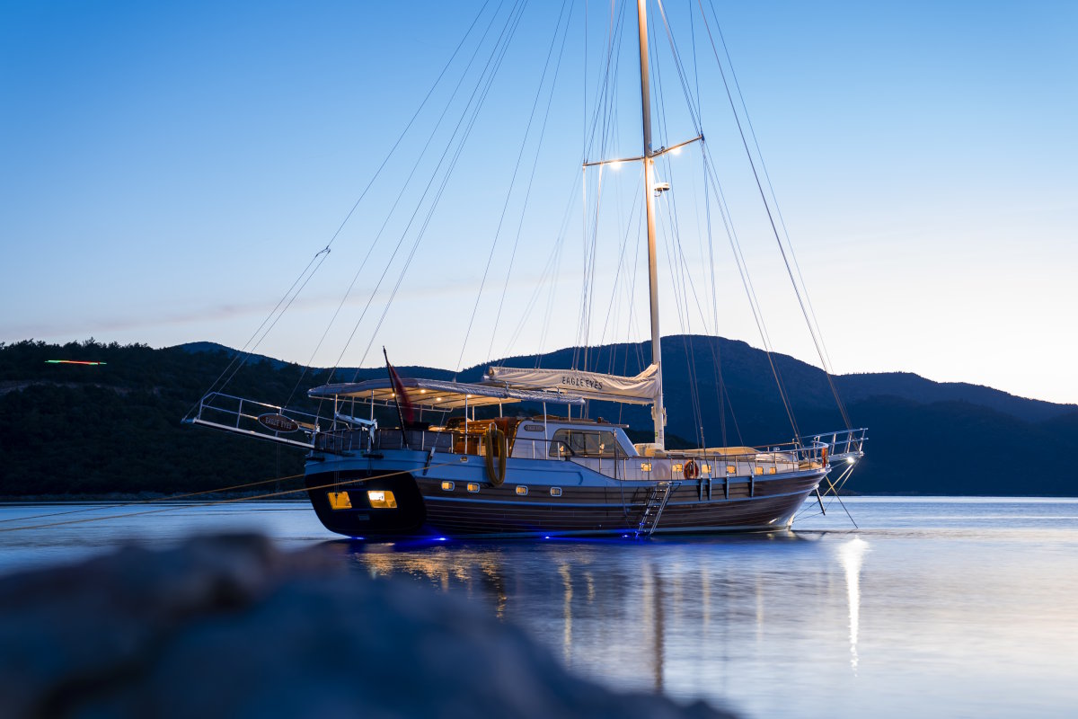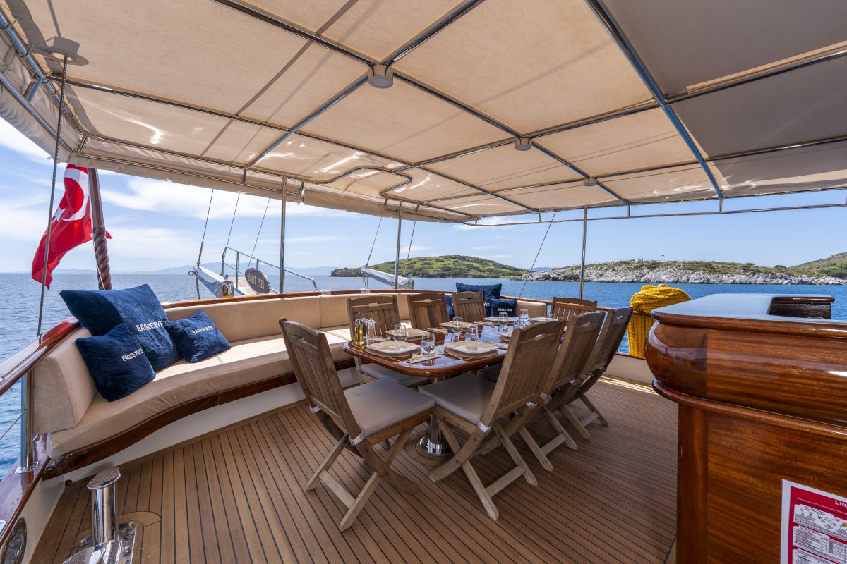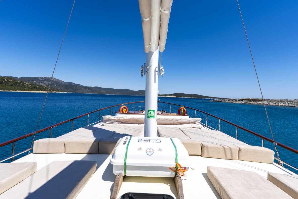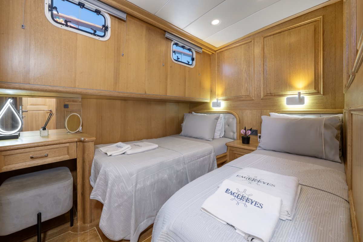 - 4 cabines (2 cabines master avec lits doubles, 1 cabine avec lit double et 1 cabine avec deux lits separes).
